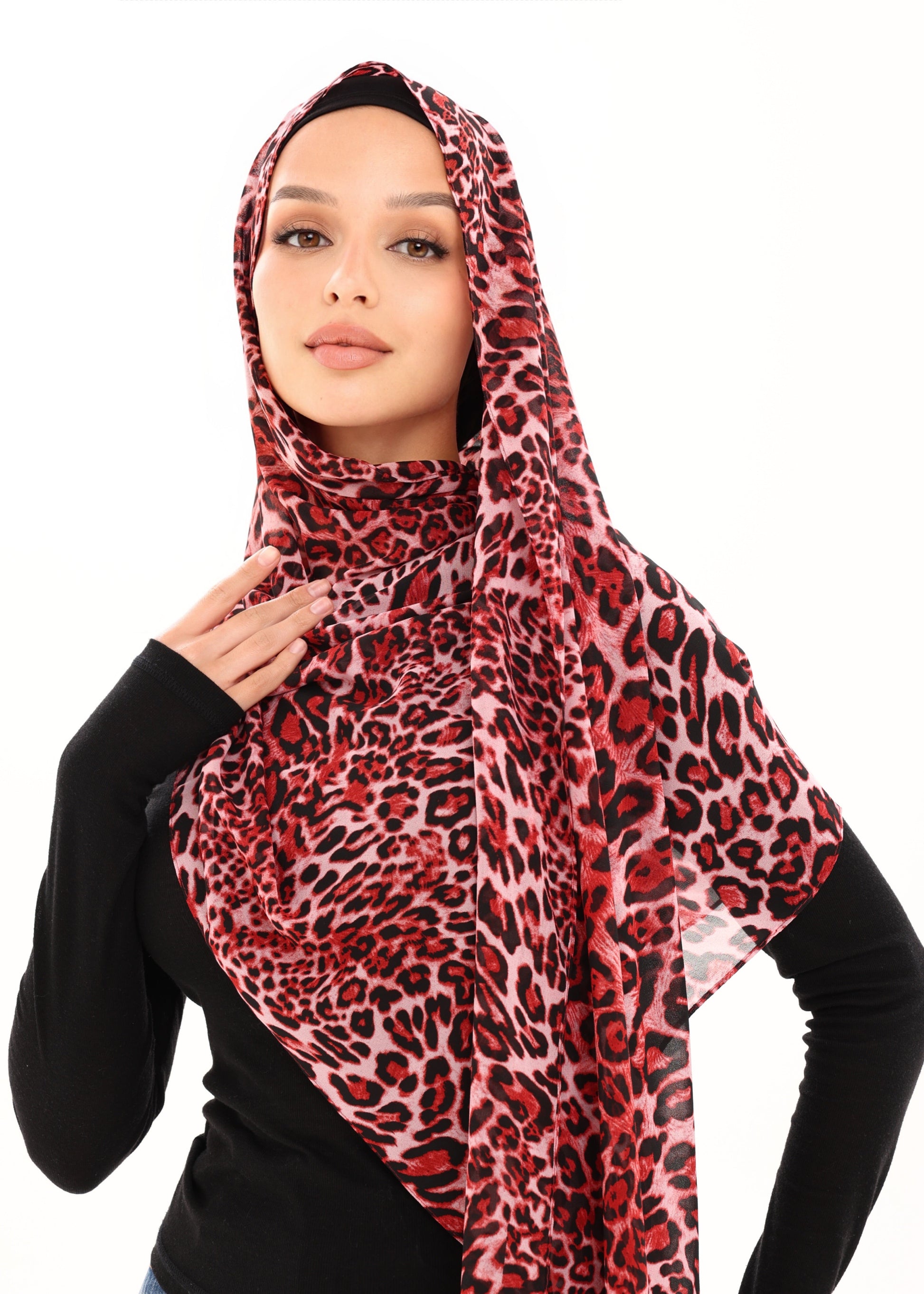 LEOPARD PRINT CHIFFON HIJAB - CRIMSON